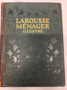 CHANCRIN - FAIDEAU. Larousse ménager illustré. Paris, Librairie Larousse, 1926 ; grand in-8, IV-1260 pp., reliure d'éditeur demi-cuir, coloris vert foncé, dos lisse, 1er plat en percaline vert foncé estampé et illustré. L'ouvrage a été établi par l'auteur, maître cuisinier, en collaboration du docteur Gottschalk. Préface de A. Escoffier et de Ph. Gilbert. Nombreuses illustrations en noir et blanc (2112 gravures) et en couleurs (20 planches hors-texte) -