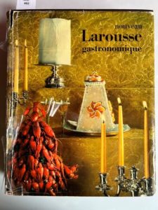 MONTAGNÉ (Prosper), COURTINE (Robert J.) - Nouveau Larousse gastronomique. Paris, Librairie Larousse, 1967 ; in-4, IV-1064 pp., reliure d'éditeur avec jaquette imprimé. L'ouvrage a été établi par l'auteur, maître cuisinier, édition revue et corrigée par Robert J. Courtine. Nombreuses illustrations en noir et blanc (1850 gravures) et en couleurs (16 planches hors-texte) -