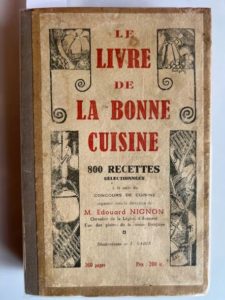 NIGNON (Édouard) - Le livre de la bonne cuisine. 800 recettes sélectionnées. Rennes, Imprimerie Bretonne, 1930 ; in-8, 368 pp., cartonnage d'éditeur, dos en toile noire. 360 pages, plus de 800 recettes, illustrations de L. Garin.
