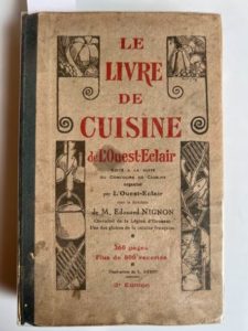 NIGNON (Édouard) - Le livre de cuisine de l'Oeust-Éclair. Rennes, L'Ouest-Éclair, vers 1930 ; in-8, 368 pp., cartonnage d'éditeur, dos en toile noire. 360 pages, plus de 800 recettes, illustrations de L. Garin.