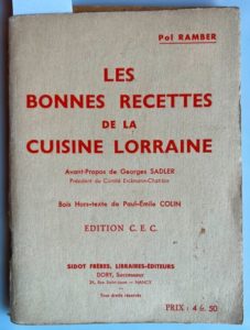 RAMBER (Pol) - Les bonnes recettes de la cuisine Lorraine. Nancy, Sidot, 1937 ; in-8, 55 pp., broché. Rare plaquette sur la gastronomie de la Lorraine.