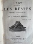 UN GASTRONOME ÉMÉRITE. L'art d'accomoder les restes, dédié aux petites fortunes par un gastronome émérite. Paris, Hachette, 1882 ; in-12, 176 pp., cartonnage d'éditeur. État moyen.