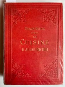 URBAIN-DUBOIS. La cuisine d'aujourd'hui. 220 dessins, dont 40 planches gravées. Service des déjeuners, plus de 300 manières de préparer les oeufs, service des dîners. Paris, Flammarion, 1890 ; in-4, 800 pp. + table XXVI pages, reliure pleine toile rouge d'éditeur. 12ème édition. Très bel état.