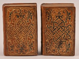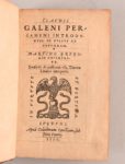 GALIEN Claude (GALENUS Claudius) [MÉDECINE] GALIEN Claude (GALENUS Claudius) RELIURES LYONNAISES XVIe siècle Réunion de 8 traités du médecin grec Galien Lugduni, Apud Gulielmum Rouillium, 1548-1559, 2 volumes 2 volumes comprenant 8 traités en latin du célèbre médecin grec publiés à Lyon chez Guillaume Rouillé entre 1548 et 1559 RELIURES LYONNAISES D’ÉPOQUE in-16°. Plein veau blond. Dos lisse d’un fleuron doré répété et d’un titre doré. Plats ornés d’un superbe décor « à lanières de cuir » composé de filet d’or et entrelacs de cire noire (estompée avec le temps par endroits). Filet doré courant sur les coupes. Toutes les tranches sont dorées et finement ciselées d’un décor à la grotesque. Départ de fente au mors du 1er plat des deux volumes, sinon très bon état de conservation. Tous les traités sont entièrement réglés. Des cahiers brunis, sans excès. 1er volume : - Introductio in pulsus ad teuthram, Martino Gregorio interprete, Eiusdem de pulsuum usu, Thoma Linacro interprete Lugduni, Apud Gulielmum Rouillium, 1550, 94 pp. + 1 f. d’imprimeur (Lugduni, excubat Philibertus Rolletius) - De Diebus decretoriis libri tres, Joanne Guinterio Andernaco interprete, Lugduni, Apud Gulielmum Rouillium, 1550, 154 pp. + 2 ff. d’index + 1 f. d’imprimeur (Lugduni, excubat Philibertus Rolletius) - De Constitutione Artis medicas, De partibus artis medicae. Introductio, seu medicus. Ars medicinalis. Omnia ad emendatiorum codicum fidem recognita, Lugduni, Apud Gulielmum Rouillium, 1552, 302 pp. + 1 f. d’imprimeur (Lugduni, excubat Philibertus Rolletius) - De Sanitate tuenda libri sex, Thoma Linacro Anglo interprete, nuperrime ad exemplar Venetum recogniti, & divulgati, Lugduni, Apud Gulielmum Rouillium, 1559, 375 pp. + 19 ff. d’index 2e volume : - In Hippocratis Librum de Natura hominis Commentarius, Joanne Guinterio Andernaco interprete, Lugduni, Apud Gulielmum Rouillium, 1553, 176 pp. - De Elementis libri duo, Victore Trincavelio interprete, Lugduni, Apud Gulielmum Rouillium, 1548, 2 ff. d’index + 154 pp. (au bas de la p. 154, Excubant Philibertus Rolletus & Bartholomaeus Fraenus, impensis honestissimorum virorum Guilielmi Rouillii & Antonii Constantini) - De Temperamentis libri iii, Thoma Linacro Anglo interprete, Cum Isagoge in eosdem libros, & scholijs marginalibus longè doctissimis per Iacobum Sylvium, Lugduni, Apud Gulielmum Rouillium, 1558, 192 pp. - De Naturalibus facultatibus libri tres, Thoma Linacro Anglo interprete huc accesserunt D. Jac. Sylvii medici cum scholia doctissime..., Lugduni, Apud Gulielmum Rouillium, 1550, 2 ff. d’index + 205 pp. (au verso de la dernière page : Excubant Philibertus Rolletius & Bartholomaeus Fraenus) + 1 f. blanc + 7 ff. d’index + 1 f. blanc Rare réunion de 8 traités de Galien publiés à Lyon au milieu du XVIe siècle et revêtus de magnifiques reliures lyonnaises strictement d’époque en excellent état de conservation