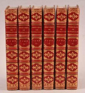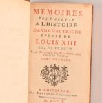 MOTTEVILLE Madame de MOTTEVILLE Madame de Mémoires pour servir à l'histoire d'Anne d'Autriche, épouse de Louis XIII, roi de France. Amsterdam, Changuion, 1750, 6 tomes In-12°. Plein maroquin rouge (2e ½ XIXe). Dos à 5 nerfs ornés d’un filet doré, décoré de caissons et de petits fers dorés, avec titre et tomaison en lettres dorées. Filets et roulettes dorés entourant les plats. Dentelles dorées aux contreplats. Pointillés dorés sur les coupes. Toutes tranches dorées. Qqes frott. çà et là. Intérieur très frais. Nouvelle édition de ces « Mémoires » de la dame de compagnie et confidente d'Anne d'Autriche couvrant les années 1615-1666 sur la reine, sa vie privée et les ressorts secrets de la Cour pendant la Fronde. Bel exemplaire bien établi.