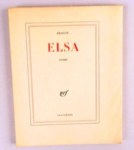 ARAGON Louis ARAGON Louis Elsa Paris, Gallimard, NRF, 1959 Petit in-4°, broché. Non coupé. Édition originale. 1/108 exemplaires sur vélin pur fil Lafuma-Navarre, seul tirage sur grand papier avec 26 Hollande. Toujours sous papier kraft d’éditeur ! Bel exemplaire