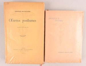 BAUDELAIRE Charles BAUDELAIRE Charles Journaux intimes Paris, Mercure de France, 1938 In-8°, broché. Dos passé. Édition originale. 1/35 exemplaires de tête sur vergé d’Arches. Remarquable étude sur les journaux intimes de Charles Baudelaire par un des très grands spécialistes de cet auteur. Bien complet de l’Errata. On joint du même : Œuvres posthumes Paris, Mercure de France, 1908 In-8°, broché. Édition en partie originale. Ex. sur papier d’édition.