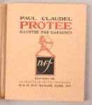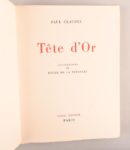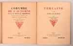 CLAUDEL Paul – [LHOTE André] CLAUDEL Paul – [LHOTE André] Réunion de 4 œuvres dont 2 en édition originale illustrées par André Lhote avec signatures autographes des deux hommes : - Verlaine Paris, NRF, 1922 In-4°, broché Édition originale ornée de 10 gravures originales sur bois à pleine page par André Lhote. Tirage à 525 exemplaires sur vergé ; ici, 1/500 mis dans le commerce. Signatures manuscrites de Paul Claudel et d’André Lhote en p. de garde. - Corymbe de l’automne – Poème de Francis Thompson traduit de l’anglais par Paul Claudel Paris, NRF, 1920 In-4°, broché (dos déc.) Édition originale ornée de 12 gravures originales sur bois à pleine page par André Lhote. Tirage à 360 exemplaires sur vélin pur fil Lafuma-Navarre ; ici, 1/350 mis dans le commerce. Signatures manuscrites de Paul Claudel et d’André Lhote en p. de garde. On joint : - Protée Paris, NRF, 1920 (1919 en 1ère de couv.) In-4°, broché. Chemise et étui. Nouvelle édition illustrée de gravures originales sur bois par Daragnès. Tirage à 400 exemplaires sur vélin pur fil Lafuma-Navarre ; ici, 1/390 mis dans le commerce. Signature manuscrite de Paul Claudel en p. de garde. - Tête d’or Paris, Louis Broder, 1949 Grand in-4° en ff. sous chemise (vélin) et étui d’éditeur. Édition illustrée par des compositions de Roger de la Fresnaye. Tirage à 250 exemplaires sur Hollande (n°160).