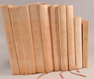 DUHAMEL Georges DUHAMEL Georges Chronique des Pasquier Réunion complète des dix volumes publiés séparément de la « Chronique des Pasquier » sur Hollande : - Le Notaire du Havre Paris, Mercure de France, 1933 Grand in-8° raisin, broché. 1/147 sur Hollande, 2e grand papier. Envoi autographe signé et daté de l’auteur au relieur Charles de Samblanx - Le Jardin des bêtes sauvages Paris, Mercure de France, 1933 Grand in-8° raisin, broché. 1/132 sur Hollande, 2e grand papier. Envoi autographe signé et daté de l’auteur au relieur Charles de Samblanx - Vue de la terre promise Paris, Mercure de France, 1934 Grand in-8° raisin, broché. 1/88 sur Hollande, 2e grand papier. Envoi autographe signé et daté de l’auteur au relieur Charles de Samblanx - La Nuit de la Saint-Jean Paris, Mercure de France, 1935 Grand in-8° raisin, broché. 1/66 sur Hollande, 2e grand papier - Le Désert de Bièvres Paris, Mercure de France, 1937 Grand in-8° raisin, broché. 1/66 sur Hollande, 2e grand papier - Les Maîtres Paris, Mercure de France, 1937 Grand in-8° raisin, broché. 1/66 sur Hollande, 2e grand papier - Cécile parmi nous Paris, Mercure de France, 1938 Grand in-8° raisin, broché. 1/77 sur Hollande, 2e grand papier - Le Combat contre les ombres Paris, Mercure de France, 1939 Grand in-8° raisin, broché. 1/116 réimposés ; ici 1/77 sur Hollande, 2e grand papier - Suzanne et les Jeunes Hommes Paris, Mercure de France, 1941 In-12°, broché. 1/70 de tête sur Hollande - La Passion de Joseph Pasquier Paris [Montréal], sn [Éditions de l’Arbre], 1941 In-12°, broché. Pas de grand papier.