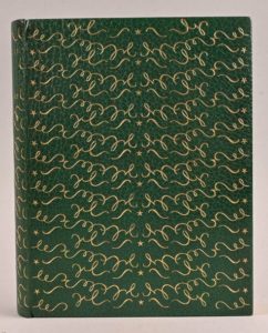 GIDE André GIDE André RELIURE DE PAUL BONET Les Faux-Monnayeurs Paris, NRF, 1925 In-4° tellière Plein maroquin vert (Paul Bonet – 1943). Dos lisse avec auteur, titre et date en lettres dorées, parcouru d’un décor de filets dorés tout en arabesques à la manière d’une écriture manuscrite et d’étoiles dorées. Même décor (en miroir) épousant toute la surface des plats. Doublures de daim vert bordé de maroquin gris souris. Gardes de même. Tête dorée. Couv. et dos cons. de belle fraîcheur. Chemise à rabats et dos (foncé) de même maroquin vert avec le même décor du dos de la reliure et étui bordé du même maroquin également. Édition originale du chef-d’œuvre de Gide. 1/121 réimposés sur vergé Lafuma-Navarre réservés aux bibliophiles de la NRF (n°XXXVI pour Paul Largy) Magnifique exemplaire très finement habillé d’une reliure conçue par Paul Bonet ! Réf. : Bonet, « Carnets », n°598 (reliure de Vermuyse en octobre 1942 – dorure de Jeanne en janvier 1943)