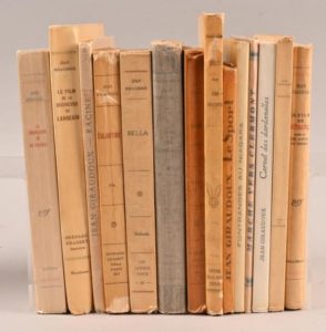 GIRAUDOUX Jean GIRAUDOUX Jean Réunion de 14 œuvres brochées en édition originale, certaines sur grand papier : - La Française et la France Paris, Gallimard, NRF, 1951 In-12°. 1/13 de tête sur Hollande (n°X) - Simon le pathétique Paris, Grasset, 1918 In-12°. Exemplaire sur papier d’édition. - L’École des indifférents Paris, Grasset, 1921 In-12°. Exemplaire sur papier d’édition. - Bella Paris, Grasset, 1926 In-12°. Exemplaire sur Hollande. Non coupé - Églantine Paris, Grasset, 1927 In-12°. Exemplaire sur papier d’édition. - Racine Paris, Grasset, 1930 In-12°. Exemplaire sur Alfax Navarre. - Le Film de la Duchesse de Langeais d’après la nouvelle de Balzac Paris, Grasset, 1942 In-8° 1/550 sur vélin Montfourat. Illustrations de Francis Laglenne. - Le Film de Béthanie – texte de « Les Anges du péché » d’après le scénario de R.L. Bruckberger dominicain, Robert Besson et Jean Giraudoux Paris, Gallimard, NRF, 1944 In-12°. 1/55 sur vélin pur fil Lafuma-Navarre - Visitations Neuchâtel et Paris, Ides et Calendes, 1947 In-12° carré. Non coupé. 1/1500 sur vergé blanc. - Carnet des Dardanelles Paris, Le Bélier, 1969 In-12°. Non coupé. Exemplaire sur vélin - Marches vers Clermont Paris, Les Cahiers libres, 1928 In-12° carré. Exemplaire sur vélin. Portrait-frontispice d’Alexeieff - Fontranges au Niagara Paris, Les Cahiers libres, 1932 In-12° carré. Exemplaire sur vélin - Le Sport Paris, Hachette, 19 Petit in-12° 1/140 sur Hollande - Berlin Paris, Émile-Paul frères, 1932 In-8°. Non coupé. Exemplaire sur vélin. Frontispice de Chas-Laborde