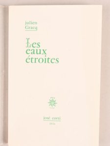 GRACQ Julien GRACQ Julien 1/100 SUR HOLLANDE Les Eaux étroites Paris, José Corti, 1976 In-12°, broché. Non coupé. Édition originale. 1/100 sur Hollande (n°75), seul grand papier. Comme neuf.
