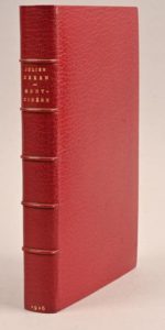 GREEN Julien GREEN Julien 1/15 DE TÊTE SUR JAPON - RELIURE DE PIERRE-LUCIEN MARTIN Mont-Cinère Paris, Plon, 1926 In-12°. Plein maroquin bordeaux janséniste (P.L. Martin). Dos à 5 nerfs avec auteur, titre et date en lettres dorées. Doublures de même maroquin bord à bord. Gardes de moire bordeaux. Coiffes guillochées. Double filet doré courant sur les coupes. Toutes tranches dorées. Couv. et dos parfaitement cons. Etui bordé du même maroquin. Édition originale. 1/15 exemplaires de tête sur Japon (n°IX). Contrecollée à l’origine (mais décollée aujourd’hui), photographie argentique de l’auteur habillé en officier vers 1942. Note au revers : « Reçu de Julien Green le 4 mai 1950 ». Provenance : Bibliothèque Raoul Simonson (ex-libris). Superbe exemplaire