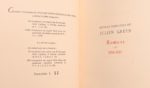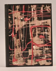 GREEN Julien GREEN Julien RELIURE DE MICHELINE DE BELLEFROID Minuit – Le Malfaiteur – Romans IV Paris, Plon, 1955 In-4°. Maroquin noir à encadrement (M. de Bellefroid). Dos lisse avec auteur, titres et date en lettres dorées. Plats recouverts de papier kromekote à motifs abstraits aux tons noir, gris, blanc et parme. Contreplats et gardes de papier bordeaux. Toutes tranches dorées. Couv. et dos parfaitement cons. Édition en partie originale pour « Le Malfaiteur » illustrée par Denise de Bravura. 5e volume des Œuvres complètes de l’auteur. 1/90 exemplaires de tête sur pur fil Lafuma (n°L.47) Très élégant exemplaire