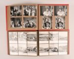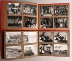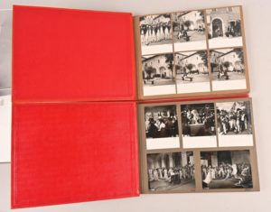 [GUITRY Sacha] – KLISSAK Jean [GUITRY Sacha] – KLISSAK Jean EXCEPTIONNELS ALBUMS DE PHOTOGRAPHIES DU FILM « NAPOLÉON » 421 photographies (ou photogrammes) argentiques originales en noir et blanc signées dans l’épreuve Jean Klissak qui était un des photographes de plateau, contrecollées dans deux albums oblongs de maroquin rouge. On y retrouve toutes les scènes du film (scènes intérieures à deux ou à plusieurs personnages, portraits des acteurs en costume, impressionnantes scènes de bataille, etc.) ainsi que des clichés du plateau en lui-même avec Guitry à la mise en scène ou des instantanés d’échange ou de repas entre acteurs. Grande fresque historique, le film « Napoléon » de Guitry fut tourné en couleurs pendant l’été 1954 et sortit en mars 1955. Il réunit une distribution prestigieuse : outre Daniel Gélin et Raymond Pellegrin (les Napoléon du film), apparaissent à l’écran entre autres Jean-Paul Aumont, Pierre Brasseur, Danielle Darrieux, Jean Marais, Michèle Morgan, Patachou, Yves Montand, Serge Reggiani, Louis Mariano et Guitry lui-même en Talleyrand. Dim. des photos : 8,5x10,5 ou 11x9 Remarquable témoignage pris sur le vif de ce film à grand spectacle du milieu du XXe siècle. Parfait état. On joint : - GUITRY Sacha Correspondance de Paul Roulier-Davenel recueillie par Sacha Guitry illustrée par lui Paris, Dorbon l’Aîné, sd [1910] In-4°, broché. Édition originale de cette supercherie littéraire sur le monde du théâtre à la Belle Époque sur papier d’édition (après seulement 15 Japon). Illustrations en noir et à pleine page. - GUITRY Sacha La Maladie Sl, Maurice de Brunhoff, sd [1914] In-4°, broché. Non coupé. Mors du 1er plat fendu. Édition originale de cette reproduction en fac-similé du manuscrit de l’auteur.