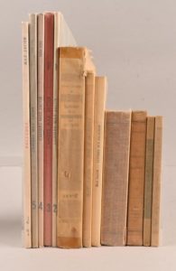 JACOB Max JACOB Max Réunion de 11 ouvrages de ou sur l’auteur : - La Défense de Tartuffe Paris, Société littéraire de France, 1919 Petit in-12° carré, broché. Dos décollé et bruni, fente en queue de la 1ère de couv. Édition originale. 1/25 de tête sur vélin de Rives (n°23) mais sans l’eau-forte de Picasso annoncée à la justification. On joint un second exemplaire sur papier bulle. - Livre de l'ami et de l'aimé. Petits cantiques d'amour dialogués, par lesquels l'entendement et la raison s'augmentent Paris, Éditions de la Sirène, 1919 In-16°, broché. Édition originale. Exemplaire du tirage courant. Ouvrage de Raymond Lulle traduit par Antonio De Barreau et Max Jacob. - Dos d’Arlequin Paris, Éditions du Sagittaire, 1921 In-8°, broché. Bordure du 1er plat émoussée. Édition originale illustrée en couleurs par l’auteur. 1/203 sur vélin pur fil - Les Pénitents en maillots roses Paris, Éditions du Sagittaire, 1925 In-16°, broché. Non coupé Édition originale. 1/850 sur vélin de Rives - Tableau de la bourgeoisie Paris, NRF, 1929 In-4°, broché. Édition originale avec des illustrations de l’auteur. 1/320 sur vélin pur fil Lafuma-Navarre. - Ballades Paris, Debresse, 1954 In-4°, broché. Nouvelle édition de cet ouvrage paru en 1938. Exemplaire sur papier d’édition. - Lettres aux Salacrou – août 1923–janvier 1926 Paris, Gallimard, NRF, 1957 In-8°, broché. Non coupé. Édition originale. 1/55 sur vélin, 2e papier. - 4 numéros des Cahiers Max Jacob : n° 2 (1952), qqes rousseurs – n°3 (1953), manque de papier en haut des 2 1ers ff. – n°4 (1954) – n°5 (1960) Tous les numéros sont non coupés.