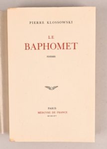 KLOSSOWSKI Pierre KLOSSOWSKI Pierre EXEMPLAIRE DE TÊTE Le Baphomet Paris, Mercure de France, 1965 …