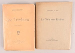 LE ROY Grégoire LE ROY Grégoire Joe Trimborn – Nouvelles Paris, Figuière et cie, 1913 In-12°, broché. Brochage un peu lâche. Rare édition originale sur papier d’édition, après seulement 7 Hollande. Grégoire Le Roy appartient à cette brillante génération d’écrivains belges de la Belle Époque avec laquelle il est en contact étroit (Van Lerberghe, Maeterlinck, Elskamp, …). On lui doit notamment un ouvrage consacré à James Ensor. On joint du même : La Nuit sans étoiles Bruxelles, Cox, 1940 Petit in-8°, broché. Édition originale. 1/300 exemplaires num. sur papier d’édition, après seulement 10 Hollande.