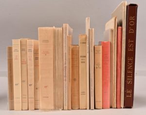 Réunion de 22 oeuvres brochées généralement en édition originale, [LITTÉRATURE FRANÇAISE – D’ADAMOV À DROUOT] Réunion de 22 oeuvres brochées généralement en édition originale, certaines sur grand papier, parfois avec envoi : - Arthur Adamov, « Le Printemps 71 – théâtre », Paris, Gallimard, NRF, 1961. In-12°. Exemplaire sur papier d’édition. - Guillaume Apollinaire, « Textes inédits », Genève, Droz, 1952. In-12°. Exemplaire sur papier d’édition. - Antonin Artaud, « D’un voyage au pays des Tarahumaras », Paris, Fontaine, coll. « L’Âge d’or », 1945. In-16° carré, broché. Couv. illustrée par Mario Prassinos. 1/700 sur vélin blanc. - Marcel Aymé, « Les Contes du chat perché », Paris, NRF, 1934. In-8°. Demi toile rouge, cartonnage illustré de l'éditeur. Dos cassé, brochage fragile, manquent pp. 3 et 4. Ouvrage contenant quatre contes : Le Loup, Les Boeufs, Le petit Coq noir, Le Chien. Ouvrage illustré de 32 compositions en couleurs de Nathan Altman. - Léon Bloy, « Lettres à Georges Khnopff », Liège, Editions du Balancier, 1929. In-8°. Tirage unique à 300 exemplaires sur Hollande (n°191). - Jean-Louis Barrault, « Réflexions sur le théâtre », Paris, Jacques Vautrain, 1949. In-8°. Couv. remp. et illustrée. Défaut en haut du dos. Édition illustrée notamment par Christian Bérard. Exemplaire sur alfa. Envoi autographe signé au faux-titre : « Pour André Poelmans avec tous mes vœux de réussite. JL Barrault. Mai 51 ». - Georges Bataille, « Œuvres complètes – Tome III et Tome IV », Paris, Gallimard, NRF, 1971, 2 tomes. Grand in-8°. EO collective. 1/310 exemplaires sur Alfa. Non coupés. - Maurice Blanchot, « Le Très-Haut », Paris, Gallimard, NRF, 1948. In-8°. Non coupé. Exemplaire sur papier d’édition - Maurice Blanchot, « Le pas Au-delà », Paris, Gallimard, NRF, 1973. In-8°. Exemplaire du Service de presse. - Daniel Boulanger, « L’Été des femmes », Paris, Gallimard, NRF, 1985. In-8°. Nouvelle édition chez Gallimard. Envoi autographe signé de l’auteur. - André du Boucher, « Ou le soleil », Paris, Mercure de France, 1968. In-4° carré. 1/300 HC. - Michel del Castillo, « La Mort de Tristan », Paris, Julliard, 1959. In-12°. Non coupé. 1/50 sur pur fil du Marais, seul grand papier. - Michel del Castillo, « Le Silence des pierres », Paris, Julliard, 1975. In-12°. Exemplaire sur papier d’édition. Envoi autographe signé de l’auteur. - René Clair, « Le Silence est d’or », Paris, Société Générale d’éditions, 1946. In-4° en ff. sous chemise et étui (accidenté) d’éditeur. Non coupé. 1/1800 sur Rives - Georges Clémenceau, « Le Voile du Bonheur – pièce en un acte », Paris, Éditions de la Sirène, 1919. Petit in-folio. Couv. passées, dos usé, qqes rousseurs. 1/1800 sur Japon à la forme. - Collectif (Gide-Romains-Colette-Mauriac), « La Guirlande des années », Paris, Flammarion, 1941. In-4°. - Lucienne Desnoues, « La Fraîche », Paris, Gallimard, NRF, 1958. In-12° étroit. 2e édition. - Le Diable à Paris – fantaisie réaliste en douze tableaux, 2 volumes : 1er volume Suarez – Sennep + 2e volume Mac Orlan – Chas Laborde. Coiffes abîmées. - Fiodor Dostoïevsky, « Lettres à sa femme », Paris, Plon, 1927. In-12°. Exemplaire sur Alfa. - Minou Drouet, « Poèmes », Genève, René Kister, 1956. In-4° illustré d’un portrait photographique de la très jeune poétesse. Avec des portraits de Roger Hauert. Envoi autographe signé. - Paul Drouot, « Les Derniers Vers », Paris, Bernouard, 1920. In-8° carré. 1/300 sur Arches, après 5 Japon.