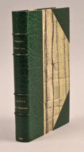 MAURIAC François MAURIAC François 1/52 DE TÊTE SUR MONTVAL Le Fils de l’Homme Paris, Grasset, 1958 In-12°. Demi-maroquin vert foncé à larges grains à coins (Janssens). Dos à 4 nerfs avec auteur, titre et date en lettres dorées. Filets dorés ornant les plats. Tête dorée. Couv. et dos parfaitement cons. Édition originale dédiée à Elie Wiesel. 1/52 exemplaires de tête sur Montval (n°35). Très agréable exemplaire