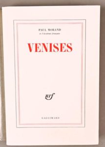 MORAND Paul MORAND Paul EXEMPLAIRE DE TÊTE Venises Paris, Gallimard, NRF, 1971 In-8°, broché. Non coupé. Édition originale. 1/65 exemplaires sur pur fil Lafuma (n°22), seul grand papier Exemplaire tel que paru.
