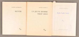 SAVITZKAYA Eugène SAVITZKAYA Eugène Réunion de 3 oeuvres brochées en édition originale sur grand papier : - Mentir Paris, Éditions de Minuit, 1977 In-12°, broché. Édition originale. 1/92 exemplaires sur Bouffant select, seul grand papier. - Un Jeune Homme trop gros Paris, Éditions de Minuit, 1977 In-12°, broché. Édition originale. 1/92 exemplaires sur Bouffant select, seul grand papier. - Bufo bufo bufo Paris, Éditions de Minuit, 1986 In-12°, broché. Édition originale. 1/20 (+ 7 HC) sur Bouffant supérieur (n°10), seul grand papier.