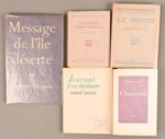 SOUPAULT Philippe SOUPAULT Philippe Réunion de 5 oeuvres, la plupart en édition originale avec envoi : - Voyage d’Horace Pirouelle Paris, Éditions du Sagittaire, Simon Kra, 1925 In-16° carré, broché. Édition originale. 1/950 sur vélin de Rives. - Le Nègre Paris, Kra, 1927 In-12°, broché. Mention de 7ème édition. Envoi autographe signé de l’auteur. - Journal d’un fantôme Paris, Les Éditions du Point du Jour, 1946 In-12° carré, broché. Non coupé. Édition originale illustrée de 8 illustrations par gravées en noir hors-texte d'après A. Alexeieff, V. Brauner, J. H. Dupuy, F. Fossorier, F. Labisse, A. Masson, M. Nissim, R. Ubac. 1/3000 exemplaires. Envoi autographe signé de l’auteur. - Message de l’île déserte La Haye, Stols, 1947 In-8° toilé d’éditeur avec jaquette. Décharges aux gardes Édition originale. 1/625 sur Hollande, après 4 papier à la cuve J. Barcham Green & Son. Envoi autographe signé de l’auteur. - Chansons Rolle, Eynard, 1949 In-12°, broché. Édition originale. Exemplaire sur vélin.