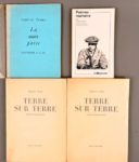 TZARA Tristan TZARA Tristan EXEMPLAIRE HC AVEC ENVOI La Main passe Paris, GLM, 1935 In-12° carré, broché. Dos (fendu) et bordures des plats passé. Édition originale. 1 des quelques exemplaires HC. Envoi autographe signé à Hubert Colleye, critique d’art et poète belge. On joint du même : - Terre sur terre Genève-Paris, Éditions des Trois Collines, 1946 Petit in-8°, broché. 2 exemplaires (un ex-libris manuscrit en p. de titre sur un ex.) Édition originale. 1/3000 sur vergé crème. - Poèmes roumains Paris, La Quinzaine littéraire, 1974 Petit in-12°, broché. Édition originale sur papier d’édition.