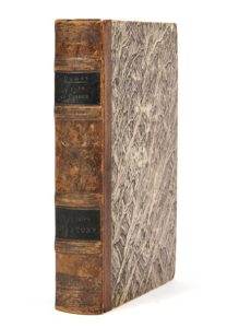 Alexandre DUMAS. Gaule et France. Deuxième édition. Paris, Victor Magen, 1835. In-8, demi-basane fauve à petits coins, dos à nerfs orné, pièces de titre noires, tranches jaunes (Reliure de l’époque). [2] ff., 375 pp. Instruire en amusant L’édition originale a paru en 1833. Dans cette « longue préface » aux études historiques à venir, Dumas raconte mille ans d’histoire de France « depuis l’établissement des Germains dans les Gaules jusqu’aux divisions entre l’Angleterre et la France par la mort de Charles le Bel ». Dumas, dont l’instruction avait été des plus négligées, notamment en histoire dont « il ne savait pas le moindre mot », se plongea dans de vastes lectures : mémoires, chroniques, études historiques. L’Histoire est à l’époque l’apanage d’ennuyeux érudits et Dumas ressent le besoin pour lui et pour ses lecteurs de trouver moyen de joindre science et plaisir de lire. Dumas n’entend pas seulement donner le goût de l’histoire à ses lecteurs mais également éveiller leur conscience civique. Dans un long épilogue, il avance dans le temps jusqu’au XIXe siècle, n’hésitant pas à développer quelques idées à priori paradoxales : trois hommes « ont été choisis de toute éternité dans la pensée de Dieu pour accomplir l’œuvre de la régénération : César, Karl-le-Grand, Napoléon. César prépare le christianisme. Karl-le-Grand la civilisation. Napoléon la liberté. » À la fin du livre, Dumas, qui ne digéra jamais la révolution confisquée de 1830, se fait plus polémique, reprochant véhémentement à Louis-Philippe un système gouvernemental qui, par un suffrage censitaire très restreint, profite à 14000 privilégiés. Vicaire III, 341 ; Talvart, 16 ; Carteret, 228 ; Munro, 36. Relié à la suite : Alexandre DUMAS. Souvenirs d’Antony. Paris, Dumont, 1835. [2] ff., 360 pp. Édition originale. Un recueil de nouvelles : « Cherubino et Celestini », « Antonio », « Maria, suite d’Antonio », « Le cocher de cabriolet », « Blanche de Beaulieu », « Un bal masqué », « Jacques Ier et Jacques II ». Vicaire III, 344 ; Talvart, 20 ; Carteret, 229 ; Munro, 48. Dorure ternie, coins un peu écrasés, rousseurs, mouillures, feuillets brunis. Précieux exemplaire de la duchesse de Berry avec l’étiquette et le numéro d’inventaire de sa bibliothèque au château de Brunsee.