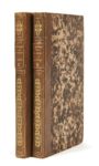 Alexandre DUMAS et Adrien DAUZATS. Nouvelles Impressions de Voyage. Quinze jours au Sinaï. Paris, Dumont, 1839. 2 volumes in-8, demi-veau havane, dos à un large faux-nerf plat portant titre et tomaison, et orné d’un fleuron et d’une guirlande dorés. [2] ff., 358 pp. [1] f. blanc ; [2] ff., 406 p., 2 frontispices par Dauzats. Première édition française (l’édition originale a paru à New York en 1838) avec mention fictive de « deuxième édition », partiellement grattée sur le titre du premier volume (Clouzot, p. 95 : « certains titres portent : deuxième édition »). Le voyage en question – une mission scientifique – eut lieu en 1830 et fut accompli par le baron Taylor accompagné par le peintre orientaliste Adrien Dauzats, un vieil ami de Dumas. Le baron Taylor obtiendra du vice-roi d’Égypte Méhemet-Ali le don de l’obélisque de Louxor. Dauzats remit ses notes à Dumas qui, toujours à court d’argent et désormais familier des collaborations littéraires, rédigea l’ouvrage. Alors même qu’il n’avait jamais mis les pieds au Moyen-Orient Dumas décrivit le pays et en rendit l’atmosphère tellement génialement qu’Ibrahim Pacha, quelque temps après la parution, lui envoya un message de félicitations disant que « de tous les hommes qui avaient visité l’Égypte, il avait le mieux décrit telle qu’elle était ». Le récit a d’ailleurs un tel air de vérité, que nombreux furent ceux qui refusèrent de croire que Dumas n’avait pas pris part à l’expédition ! Munro, 70-71. Coiffes frottées, petite épidermure superficielle au dos du second volume, gardes volantes brunies, rousseurs, pliures angulaires à quelques feuillets. Quinze jours au Sinaï où l’art de raconter un voyage que l’on n’a pas effectué.