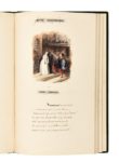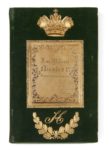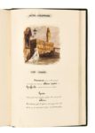 Alexandre DUMAS. L’Alchimiste. [1839]. Manuscrit in-8 (240 x 155 mm) dans une reliure de velours de soie vert, premier plat orné de motifs en argent doré et ciselé : dans le haut une couronne impériale, au bas deux branches de laurier surmontées du N russe, au centre un riche encadrement (121 x 103 mm) sur lequel est monté à charnières une fenêtre gravée de rinceaux et portant la dédicace. En ouvrant la fenêtre on découvre une peinture d’Isabey (95 x 75 mm). Doublures et gardes de soie moirée blanche, tranches dorées (Reliure de Alph. Giroux). La reliure est contenue dans une boîte gainée de chagrin vert au couvercle orné de fers et de filets dorés, doublée. Elle porte au revers la mention dorée : « A Paris chez A. Giroux et C ». 80 ff., et 6 peintures. Extraordinaire exemplaire de présent au tsar de Russie Nicolas Ier. Manuscrit calligraphié, peut-être par Dumas lui-même ; jeune homme, sa belle écriture était le seul avantage dont il pouvait se prévaloir pour réussir dans la vie. La pièce, écrite en collaboration avec Gérard de Nerval (qui aurait rédigé seul le premier acte) est une sorte de « méditation sur l’homme de génie tiraillé entre ses aspirations chimériques et l’amour de sa femme » (Hélène Laplace-Claverie) Dumas et Nerval l’adaptèrent librement de la tragédie de Milman, Fazio, créée à Londres en 1818. Dumas y introduit l’important personnage de Lelio et change la fin tragique en une autre plus heureuse. L’Alchimiste, drame en 5 actes et en vers, a été représenté pour la première fois au théâtre de la Renaissance le 10 avril 1839 avec Frédéric Lemaître dans le rôle de Fasio et Ida Ferrier dans celui de Francesca. Il se déroule à Florence au XVIe siècle. Le rideau s’ouvre sur l’alchimiste Fasio, héritier spirituel de Nicolas Flamel, tout entier absorbé dans son grand œuvre et son épouse Francesca délaissée et frustrée. Après maints tours et détours, dont une tentative de séduction par le podestat, les manœuvres d’une dangereuse courtisane, un meurtre et une fortune mal acquise, la pièce voit le triomphe de l’amour conjugal. L’atmosphère flamboyante de la Renaissance italienne, les mystères de l’alchimie, la violence des passions, tout concourt à faire de cette œuvre un archétype du théâtre romantique. La dédicace est gravée sur la fenêtre dorée de la reliure, en lettres gothiques : A sa Majesté Nicolas 1er Empereur de toutes les Russies Son très humble Et très obéissant serviteur A. Dumas Les meilleurs artistes romantiques participèrent à ce cadeau de prix : - Dans l’encadrement de la reliure, la peinture d’ISABEY (1804-1886), signée en bas à droite, représente l’Alchimiste dans son officine. Eugène Isabey, fils de Jean-Baptiste Isabey, suivit les traces de son père. Il s’illustra dans les scènes d’histoire et de genre comme celle-ci. Excellent maître, il eut Boudin comme élève. - La page de titre est ornée d’une miniature avec un grand encadrement dans le genre gothique signée au bas par Théodore MASSON (1811-1850). On sait peu de choses sur Masson, aquarelliste natif de Rouen, et spécialisé dans les vues d’édifices religieux, qui mourut trop jeune pour développer tout son talent. Mais il se peut que Dumas l’ait rencontré dans l’entourage du baron Taylor. - En tête des actes 1 et 5, aquarelle de Adrien DAUZATS (1804-1868). Dauzats, vieille connaissance de Dumas qui mit des notes qu’il avait rapportées du Sinaï un chef-d’œuvre de la littérature de voyage, s’illustra dans la peinture orientaliste. Les grands écrivains romantiques l’admirèrent et Dumas le cite à plusieurs reprises dans ses œuvres. - En tête des actes 2 et 4, aquarelle de Louis BOULANGER (1806-1867). Élève de Devéria, il devint très vite un intime de Victor Hugo et fréquenta les différents cénacles romantiques. Parmi ses œuvres majeures on peut citer le portrait de Balzac en robe de moine. Il appartint au premier cercle des amis de Dumas qu’il accompagna notamment dans son voyage en Espagne et en Algérie en 1846. Dumas laisse de lui un portrait sensible dans De Paris à Cadix : « peintre rêveur […] toujours accessible au beau, sous quelque aspect qu’il se présente, admirant presque à un degré égal la forme avec Raphaël, la couleur avec Rubens, la fantaisie avec Goya. Pour lui, toute chose est grande, et, au contraire de ces pauvres esprits dont l’œuvre stérile est d’abaisser sans cesse, lui se laisse prendre sans combat, tombe à genoux devant l’œuvre de Dieu, admire ou prie. » - En tête de l’acte 3, aquarelle de Jules DUPRÉ (1811-1889). Un autre proche de Dumas, dont les paysages remportèrent de grands succès. Dumas accroche ses tableaux dans l’appartement de garçon d’Albert de Mortcerf dans Monte-Cristo : « Il y avait des paysages de Dupré, aux longs roseaux, aux arbres élancés, aux vaches beuglantes et aux ciels merveilleux. » Dumas, dit-on, avait une passion pour les décorations. Ayant appris que le peintre Horace Vernet avait reçu du tsar l’ordre de Saint-Stanislas, espérait-il, en faisant réaliser ce somptueux manuscrit, obteni