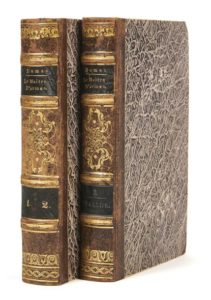 Alexandre DUMAS. Le Maître d’armes. Paris, Dumont, 1840-1841. 3 tomes en deux volumes in-8, demi-veau moucheté à coins, dos à nerfs ornés, pièces de titre et de tomaison en percaline noire, tranches jaunes (Reliure de l’époque). [2]ff., 320 pp. ; [2] ff. ; 332 pp. ; [2] ff., 336 pp. La conspiration des decabristes Édition originale. Revenant à la salle d’armes de Grisier après la soirée où Alfred de Nerval leur avait raconté l’histoire de Pauline (voir n° 28), Dumas demande à l’escrimeur de le tirer d’embarras afin de remplir le traité qu’il venait de signer avec son libraire auquel il n’avait rien à donner ! Grisier sort de son armoire une liasse de papiers contenant les souvenirs d’un de ses confrères (il s’agit en fait des siens) présent en Russie en 1824-1826, soit « pendant les années les plus intéressantes : la fin du règne de l’empereur Alexandre, et l’avènement au trône de l’empereur Nicolas. » Grisier fut impliqué dans le complot des décabristes qui voulaient obtenir de Nicolas Ier une constitution. Sous les noms de Pauline Dupuy et d’Alexis Waninkoff, Dumas raconte le destin de Pauline Gueble et d’Ivan Alexandrovitch Annenkoff qui furent déportés en Sibérie. Vicaire III, 351 ; Talvart, 42 ; Munro, 99 qui décrit également 4 préfaçons belges. Relié à la suite : Alexandre DUMAS. Praxède, suivi de Don Martinn de Freyras et de Pierre-le-Cruel. Paris, Dumont, 1841. [2] ff., 307 pp. Édition originale. Trois nouvelles inspirées par l’Espagne. Voir description au n° 51. Vicaire III, 352 ; Talvart, 44 ; Munro, 96. Frottements aux dos, or de la pièce de tomaison du second volume ternie, coins un peu écrasés, rousseurs éparses. L’exemplaire de la duchesse de Berry avec l’étiquette de sa bibliothèque au château de Brunsee.