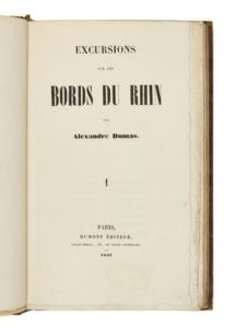 Alexandre DUMAS. Excursions sur les bords du Rhin. Paris, Dumont, 1841-1842. 3 volumes in-8, …