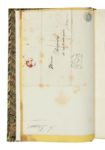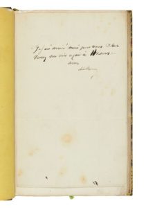 Alexandre DUMAS. Aventures de Lyderic. Paris, Dumont, 1842. In-8, demi-veau olive, dos orné de fleurons à froid, de filets et de roulettes dorées soulignant les faux-nerfs, date dorée en pied, couvertures et dos conservés, tête dorée, non rogné (Reliure de Canape et Corriez). [2] ff., 359 pp. Édition originale. Entre mythe et fiction : l’histoire de Lyderic, enfant trouvé élevé par un ermite, protégé par un rossignol, qui se révèle être le fils d’une princesse et qui deviendra le premier comte de Flandres. Vicaire III, 354 ; Munro, 114. Relié en tête : LAS à Monsieur Charpentier 4 rue Montesquiou Paris », 1er février 1834 (cachet de la poste), 3 lignes : Je suis arrivé mais pour vous seul Venez me voir ce soir à 10 heures A vous A. Dumas Dos passé, coiffes et coins très légèrement frottés, infimes piqûres et déchirures marginales. Rare édition originale de cette chronique des origines mythiques du premier comte de Flandres.