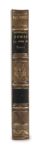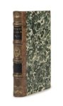 Alexandre DUMAS. La Robe de noces. Bruxelles et Leipzig, Méline Cans et Compagnie, 1844. In-18, demi-basane fauve à petits coins, dos à nerfs orné d’un fleuron et de roulettes dorées, pièces de titre en maroquin noir, tranches jaunes (Reliure de l’époque). [2] ff., 332 pp. Une curiosité dans l’œuvre de Dumas Contrefaçon belge. L’édition originale parue la même année chez Dumont porte le titre de Cécile. La scène d’ouverture, qui se déroule au début de l’Empire, nous montre une jeune fille, Cécile de Marsilly, qui propose à une actrice célèbre – sans doute inspirée par Marie Dorval – de lui acheter une robe aux broderies magnifiques. Par un retour en arrière aux débuts de la Révolution on apprendra pourquoi Cécile qui a grandi en exil – Dumas s’est inspiré des souvenirs contemporains pour décrire les difficultés de la vie à Londres pour les exilés désargentés – s’est défaite de cette robe qu’elle a elle-même brodée. Munro, 135. Dos pâli, coins frottés, très rares rousseurs. Rare incursion de Dumas dans le genre du roman sentimental et pathétique. L’exemplaire de la duchesse de Berry avec l’étiquette et le numéro d’inventaire de sa bibliothèque au château de Brunsee.