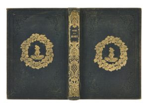 Alexandre DUMAS. Histoire d’un casse-noisettes. Paris, J. Hetzel, 1845. 2 tomes en un volume petit in-8, percaline bleue de l’éditeur, décor doré sur les plats et le dos, tranches dorées. 131 pp., [1] p., frontispice compris dans la pagination ; 122 pp., [1] f., vignettes par Bertall in-texte. Édition originale. Une adaptation libre du conte pour enfants d’Hoffmann Nussknacker und Mausekönig. C’est la version de Dumas qui inspira à Tchaïkovky son ballet Casse-noisettes. Vicaire III, 371 ; Talvart, 78 ; Munro, 148. Mors frottés, coins légèrement émoussés, quelques cahiers légèrement déboités, quelques rousseurs et taches claires.