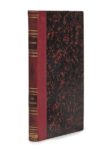 Alexandre DUMAS. Une Amazone. Paris, Hippolyte Souverain, 1848. In-8, demi-veau cerise, dos à faux nerfs orné de fleurons à froid, de filets et de roulettes dorées, pièce de titre en maroquin bordeaux, date dorée en pied, couvertures imprimées et dos conservés, non rogné (Reliure de Canape). 252 pp. Une nouvelle recueillie dans le neuvième volume d’un ouvrage collectif intitulé le Foyer de l’Opéra – Mœurs fashionables, auquel participèrent, entre autres : Balzac, Frédéric Soulié, Émile Souvestre, Léon Gozlan, Paul de Kock, Alexandre Dumas Fils, George Sand. Dumas prétendit que l’histoire s’était réellement passée et qu’il avait seulement changé le nom des personnages. Au bal de l’Opéra, Édouard tombe sous le charme d’un mystérieux domino qui refuse de lui dévoiler son nom mais lui promet qu’ils se reverront. La femme mystérieuse le met toutefois en garde : « Écoutez, vous ne me connaissez pas. Je suis une de ces femmes capables de donner leur vie, leur âme, à l’homme qu’elles aiment ; ardentes dans leur amour, mais terribles dans leur haine. Cela vous effraye, n’est-ce pas ? » Cette nouvelle sera rééditée tout au long du XIXe siècle sous le titre Herminie puis Herminie l’Amazone. Munro, 193. Coins frottés, deux derniers feuillets provenant d’un autre exemplaire.