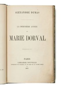 Alexandre DUMAS. La Dernière Année de Marie Dorval. Paris, Librairie Nouvelle, 1855. In-32, …