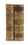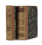 Alexandre DUMAS. Le Secrétaire de la marquise du Deffand. Paris, 1856-1857. Leipzig, chez Wolfgang Gerhard. 7 tomes en 2 volumes in-32, demi-basane fauve à petits coins, dos à nerfs ornés d’un fleuron, de grecques, de roulettes et de filets dorés, pièces de titre en maroquin havane, tranches jaunes (Reliures de l’époque). [2] ff., 156 pp. ; [2] ff., 139 pp., [1] p. ; 160 pp. – 160 pp. ; 160 pp. ; 160 pp. ; 146 pp. Contrefaçon des pseudo-mémoires de la grande salonnière dont l’édition originale avait été publiée à Paris sous le titre Madame du Deffand également en 1856-1857. Ils ont été rédigés par la comtesse Dash. Avec Mme du Deffand c’est toute la société du XVIIIe siècle qui défile. Les souvenirs qu’elle relate dans ces deux volumes sont ceux de sa jeunesse et on y trouve tour à tour Mme de Tencin, le duc de Richelieu, Mme de Parabère, la société de la duchesse du Maine au château de Sceaux… Munro, 292-293 qui indique que cette édition a 8 volumes. Notre exemplaire est bien complet en 7. Dos passés, mors inférieur du second volume fendillé en tête, rousseurs. L’exemplaire de la duchesse de Berry sans l’étiquette ni le numéro d’inventaire de sa bibliothèque au château de Brunsee.