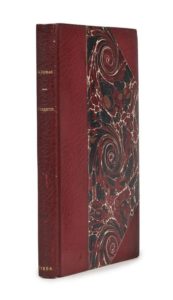 Alexandre DUMAS. L’Orestie. Tragédie en trois actes et en vers. Imitée de l’antique. Paris, À la Librairie Théâtrale, 1856. In-12, demi-maroquin à coins rouge à la Bradel, tête dorée, couvertures et dos conservés, non rogné (Reliure de Carayon). [3] ff., 107 pp., [1] p. (remerciements aux artistes). Édition originale. Cette pièce, composée d’après Eschyle, Sophocle et Euripide, dédiée « au peuple », a été créée au Théâtre de la Porte-Saint-Martin le 5 janvier 1856. Dumas, dans le Mousquetaire défia quiconque de prouver qu’un seul des vers n’était pas de lui. Vicaire III, 408 ; Talvart, 143 ; Munro, 289. Dos très légèrement foncé, coins supérieur du premier frotté. Agréable exemplaire d’une édition peu courante.
