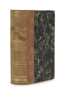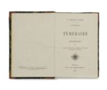 Alexandre DUMAS. Charles le Téméraire. Leipzig, Alph. Durr, “Collection Hetzel“, 1857. 2 tomes en un volume in-32, demi-basane fauve à petits coins, dos à nerfs ornés de grecques et de filets dorés, pièces de titre en maroquin havane clair, tranches jaunes (Reliure de l’époque). 236 pp., 228 pp. Édition autorisée pour la Belgique et l’Étranger, interdite pour la France, imprimée à Bruxelles chez J. Vanbuggenhoudt. Chronique historique sur la vie du dernier duc de Bourgogne qui couvre la période 1435-1477. Munro fait l’hypothèse que Dumas l’écrivit plusieurs années avant car elle offre des similitudes de traitement avec les Chroniques (à partir de 1835) et Jehanne la Pucelle (1842). Vicaire II, 720 et III, 412 ; Talvart 152 A (à l’adresse de Méline et Cans à Bruxelles), Munro, 299. Dos pâli, tache sur la pièce de titre, rousseurs éparses. L’exemplaire de la duchesse de Berry, sans l’étiquette ni le numéro d’inventaire de sa bibliothèque au château de Brunsee.