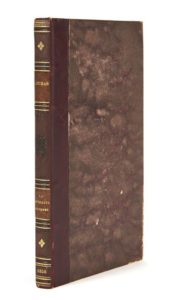 Alexandre DUMAS. La Retraite illuminée. Avec divers appendices sur la Fête auxerroise par MM. Joseph Bard et Sommeville. Auxerre, Ch. Gallot, 1858. In-12, demi-veau aubergine, dos lisse orné de fleurons dorés et à froid et de filets dorés, date dorée en pied, couvertures conservées, non rogné (Reliure de Canape). 88 pp. Édition originale Dos un peu passé, menus frottements aux coiffes et aux coins, taches sur le premier plat de couverture. Plaisant exemplaire. Rare.