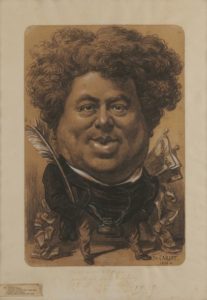 Etienne CARJAT. Portrait charge d’Alexandre Dumas. Fusain avec rehauts de craie blanche. Signé …