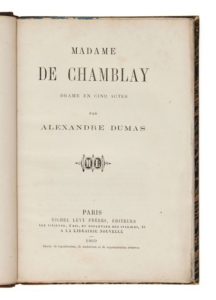 Alexandre DUMAS. Madame de Chamblay. Drame en cinq actes. Paris, Michel Lévy Frères, A la …