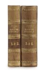 Alexandre DUMAS. La Marquise d’Escoman. Leipzig, Alph. Durr (Bruxelles, Imprimerie de E. Guyot), Collection Hetzel, 1860. 5 tomes (mal tomés 1 & 2, 3 & 4) en 2 volumes in-32, demi-basane fauve à petits coins, dos à nerfs ornés de grecques, roulettes et filets dorés, tranches jaunes (Reliure de l’époque). 189 pp., [1] p. ; 199 pp., [1] f. – 178 pp, [1 f.] ; 181 pp., [1] f. ; 133 pp., [1] f. Édition « interdite pour la France ». L’édition originale a paru à l’enseigne de Méline et Cans à Bruxelles. Ce roman, un « drame galant », se déroule dans les années 1830. Il fut écrit en collaboration avec Cherville. De galant il n’a que le terme car la société louis-philipparde ne l’était guère envers les femmes, et Dumas, dans ce roman, qui se déroule sur une dizaine d’années, dresse un tableau accablant de la situation qui leur était faite. Dans la société que décrit Dumas seuls les hommes comptent et pour eux seul compte l’argent : il tient lieu de ticket d’entrée – un noble désargenté n’est rien, ce que Louis de Fontanieu apprendra à ses dépens – et vous permet d’y garder votre place même si vous êtes débauché et joueur. C’est le cas du marquis d’Escoman qui entretient ouvertement une maîtresse et dilapide au jeu l’argent de sa femme. Et les femmes ? En haut de l’échelle sociale, la marquise compte pour son mari tant qu’elle lâche les cordons de la bourse. Mais il n’hésite pas à la faire condamner pour un adultère qu’elle n’a pas commis. Au bas de l’échelle, Marguerite, sa maîtresse, qui, pour avoir une vie meilleure, se prostitue… Dumas tisse finement sa toile entre ses quatre personnages et ce roman tardif est de sa meilleure plume. Vicaire II, 725 et III, 424 ; Talvart, 186 A ; Munro, 160. Tous les trois à l’adresse de Bruxelles, chez Méline, Cans et Cie. Même Munro ne signale pas cette adresse de Leipzig. Dos pâlis avec de petites taches, rousseurs éparses. Un « drame galant » des mieux venus. L’exemplaire de la duchesse de Berry, sans l’étiquette ni le numéro d’inventaire de sa bibliothèque au château de Brunsee.