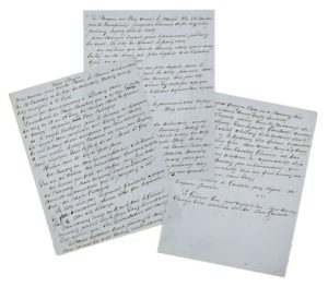 Alexandre DUMAS. Affaire de Brescia. S.d. [mai 1862]. Manuscrit autographe. 3 pp. in-4 sur papier bleu. Belle défense de Garibaldi après l’arrestation de Cattabens son aide de camp Un article destiné à L’Indipendente et publié le 20 mai 1862. En mai 1862, alors que Garibaldi se trouve près de la frontière autrichienne, des volontaires tentent d’entrer dans les provinces encore tenues par les Autrichiens et sont arrêtés par l’armée régulière italienne. Sur le moment l’affaire apparaît confuse, mais Dumas apporte un soutien sans faille à Garibaldi. Son passeport ayant été retrouvé dans les mains d’un voleur, Cattabens est arrêté comme son complice. L’arrestation fut faite de nuit et sans grands égards pour lui, et Dumas rappelle la présomption d’innocence : Nous ne demandons pas plus d’égards pour le major Cattabens que pour les autres prévenus – mais qu’on ne l’oublie pas, être prévenu n’est pas être coupable. […] Jusqu’à la prononciation du jugement, nous ne dirons pas « Il est innocent – mais il doit être innocent ». Quant à l’arrestation des volontaires, à notre avis une imprudence a été commise, c’était de les conduire à Brescia, c’est-à-dire à l’une des villes les plus enthousiastes de la haute Italie, la vue des prisonniers dont le seul crime est d’avoir pêché par trop d’ardeur a exaspéré les patriotes brescians. De là le malheur que nous déplorons plus que personne, attendu que plus que personne nous sommes convaincus que ce serait une grande erreur d’espérer quelque chose en ce moment d’un mouvement à main armée contre l’Autriche. Quant à la dépêche insérée dans les journaux du 18 au soir, dépêche dans laquelle Garibaldi récusait toute responsabilité à l’endroit de la tentative sur le Tyrol italien et la rejetterait sur l’ardeur imprudente de quelques jeunes gens, nous avons peine à y croire. Garibaldi avec son caractère généreux est bien plutôt homme à réclamer la responsabilité d’un acte dont il n’aurait pas eu connaissance qu’à dénier la responsabilité d’un acte qu’il aurait non seulement connu, mais dirigé. Le patriotisme de Garibaldi peut s’égarer. Sa loyauté jamais. Bel article qui montre le soutien indéfectible de Dumas envers Garibaldi.