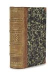 Alexandre DUMAS. La Terreur prussienne à Francfort; Épisode de la guerre en 1866. Paris, 1868. Naumbourg s/S, chez G. Paetz. 4 tomes en un volume in-12, demi-basane fauve à petits coins, dos à nerfs orné d’un fleuron, de grecques, de roulettes et de filets dorés, pièces de titre en maroquin blond, ranches jaunes (Reliure de l’époque). 160 pp. ; 160 pp. ; 160 pp. ; 173 pp., [3] pp. Contrefaçon belge. L’édition originale a paru la même année à Paris chez Michel Lévy. Ce roman est une commande d’Ernest Hollander, directeur du journal La Situation. Ce journal nouvellement fondé, violemment anti-prussien, défendait la cause du roi de Hanovre, exilé à Vienne, après que la Prusse avait annexé son royaume en 1866. Dumas, qui depuis 1848 tentait d’alerter le gouvernement français du danger que représentait la Prusse, n’eut aucun mal à rédiger ce roman anti-prussien. Pour lui donner consistance il effectua un rapide voyage en Allemagne afin de visiter les champs de bataille de Sadowa et de Langensalza. Munro, 347 qui donne cette édition pour l’originale. Dos légèrement pâlis, rousseurs, petites déchirures marginales, réparation à 2 feuillets en fin d’ouvrage. Édition très rare. L’exemplaire de la duchesse de Berry sans l’étiquette ni le numéro d’inventaire de sa bibliothèque au château de Brunsee.