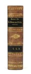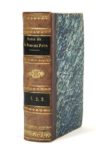 Alexandre Dumas, Fils. La Dame aux perles. Bruxelles, Méline, Cans et Cie, 1853. 3 tomes en un volume in-16, demi-basane maroquinée aubergine à petits coins, dos à nerfs orné d’un fleuron et de roulettes dorées, pièces de titre et de tomaison en veau noir, tranches jaunes (Reliure de l’époque). [2] ff., 245 pp. ; [2] ff., 237 pp. ; [2] ff., 237 pp. Contrefaçon belge. L’édition originale a paru la même année à la Librairie Nouvelle. La « dame aux perles » est la comtesse Lydie de Nesselrode dont Alexandre Dumas Fils tomba éperdument amoureux. Dumas Père raconta dans une de ses causeries, « Trois dames », comment il lui avait été présenté. La liaison trop affichée provoqua la colère du mari et le rappel du couple par l’empereur. Dumas Fils suivit sa maîtresse jusqu’en Silésie, mais se vit interdire l’entrée en Russie. Dumas Fils rentra à Paris avec un sujet de roman. Dos uniformément passé, coins légèrement écrasés, rares rousseurs et taches, menues déchirures marginales à quelques feuillets. Charmant exemplaire d’un titre très rare de Dumas Fils, provenant de la bibliothèque de la duchesse de Berry dans son château de Brunsee avec l’étiquette sur le contreplat et le numéro d’inventaire au verso de la garde volante.