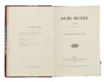 Alexandre DUMAS, Fils. Le Demi-Monde. Comédie en cinq actes, en prose. Paris, Michel Lévy Frères, 1855. In-18, demi-maroquin à coins rouge, dos lisse, pièce de titre en maroquin fauve, date dorée en pied, couvertures conservées, non rogné (Reliure de Champs). 162 pp. Les débuts du théâtre réaliste Édition originale. La pièce fut créée au Gymnase-Dramatique le 20 mars 1855 avec Rose Chéri dans le rôle principal. La première remporta un triomphe. C’est Dumas Fils qui inventa ce terme de « demi-monde » pour désigner la prostitution de haute volée. Sainte Beuve fut le rapporteur d'une commission chargée de décerner des primes aux ouvrages dramatiques présentant « toutes les conditions désirables d'un but honnête et d'une exécution brillante ». Pour la commission le Demi-monde était « sans contredit la plus remarquable des pièces représentées pendant l'année ». Quant au but honnête... « le demi-monde, cette chose longtemps douteuse, équivoque, mal définie, et qui a maintenant un nom, cette province aux frontières vagues et dont la géographie est comme fixée pour le moment, est-ce là un sujet qui prête à une leçon morale "vivement donnée" ? Assurément oui. » En théorie, mais pas en l'espèce, Dumas fils s'étant refusé à condamner. Vicaire III, 465 ; Talvart, 19 ; Carteret, 248. Quelques rousseurs marginales et sur les tranches. Bel exemplaire.