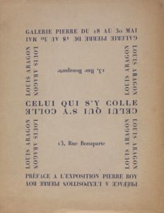 [ARAGON (Louis)]. Les Plaisirs de la Capitale. Paris la nuit - Ses bas-fonds ses jardins secrets. Par l'auteur du Libertinage, de la Bible dépouillée de ses longueurs du Mauvais plaisant, etc. Berlin, à compte d'auteur, 1923, plaquette in-12, 32 pages. Édition originale parue sans nom d'auteur tirée à 200 exemplaires. Exemplaire de Georges Sadoul avec une petite note autographe signée sur un bristol blanc. - Celui qui s'y colle. Préface à l'exposition Pierre Roy. Paris, Galerie Pierre, 1925, in-8, broché, n. p. Édition originale de cette rare plaquette comprenant 1 hors-texte volant, reproduction d'un tableau de Pierre Roy, et un texte d'Aragon de la meilleure eau. La couverture est un montage typographique permettant de lire les informations dans plusieurs sens. Le hors-texte volant est en double exemplaire.